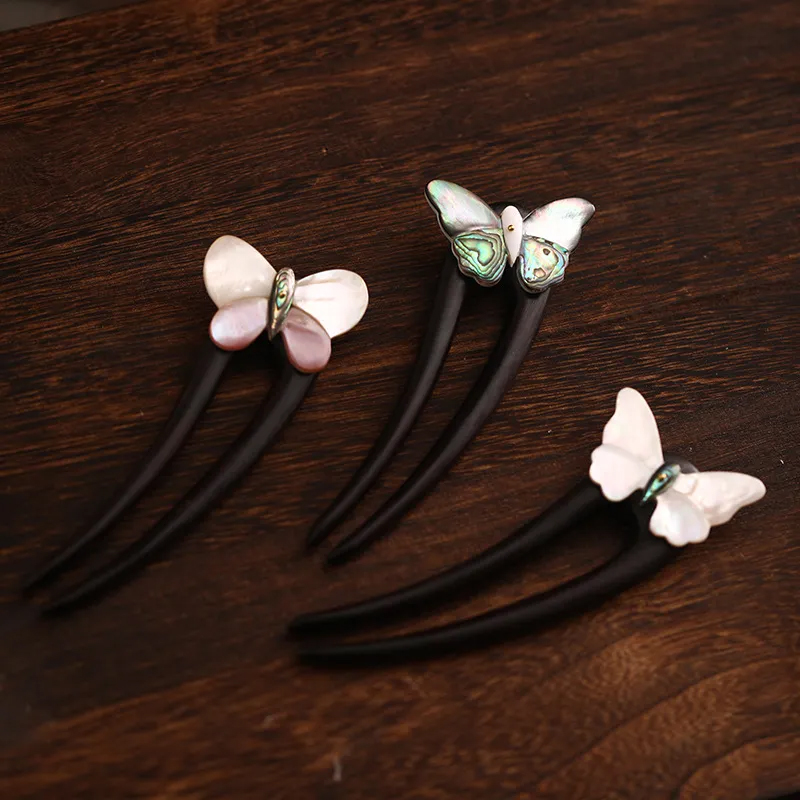黒檀木 かんざし 椿の花 U字型 簪 和風 普段使い 成人式 着物 クラシカル 上品 髪飾り