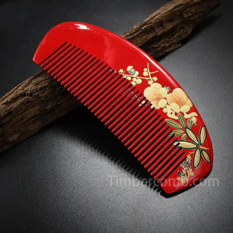 ローズウッド櫛 高級感 木製の櫛 お守り 花 塗り櫛 天然木 ヘアコーム 静電気防止 頭皮マッサージ