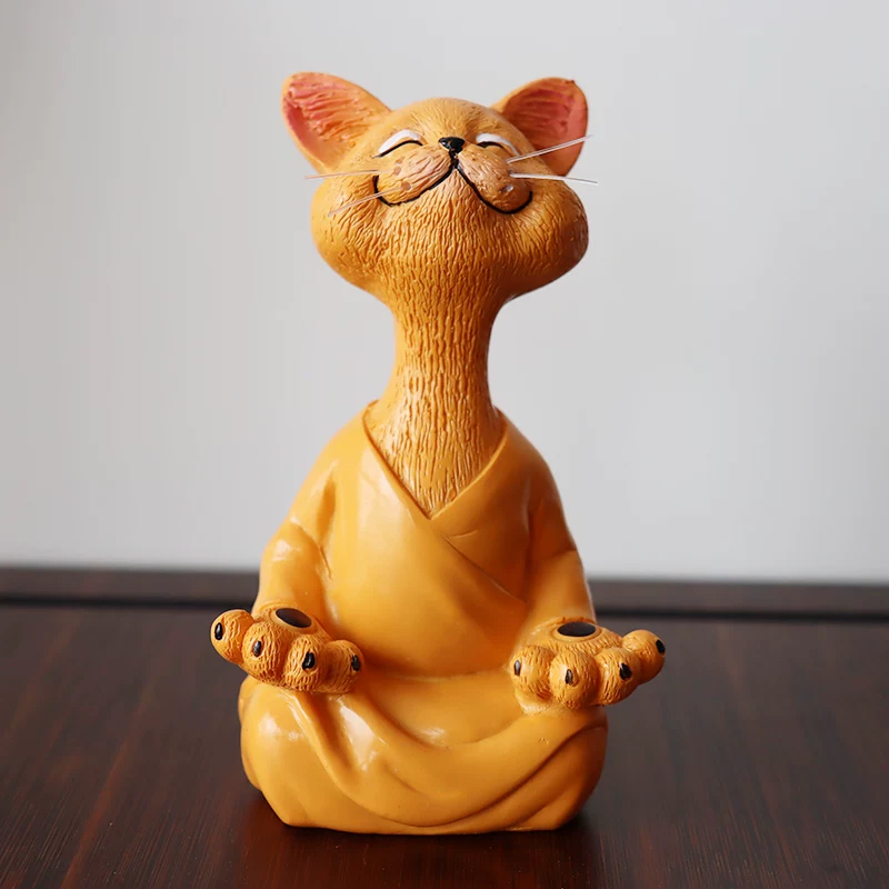 This desk ornament features an unexpected combination of a serious Zen pose and an adorable cat, sure to bring a smile.