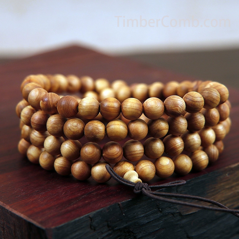 天然の崖柏木(チャイニーズサンダーボード)を使用した高級ブレスレットです。直径 8mm の 108 個の玉が滑らかな肌触りと自然の木目模様を放ち、穏やかな香りが癒し効果を発揮します。