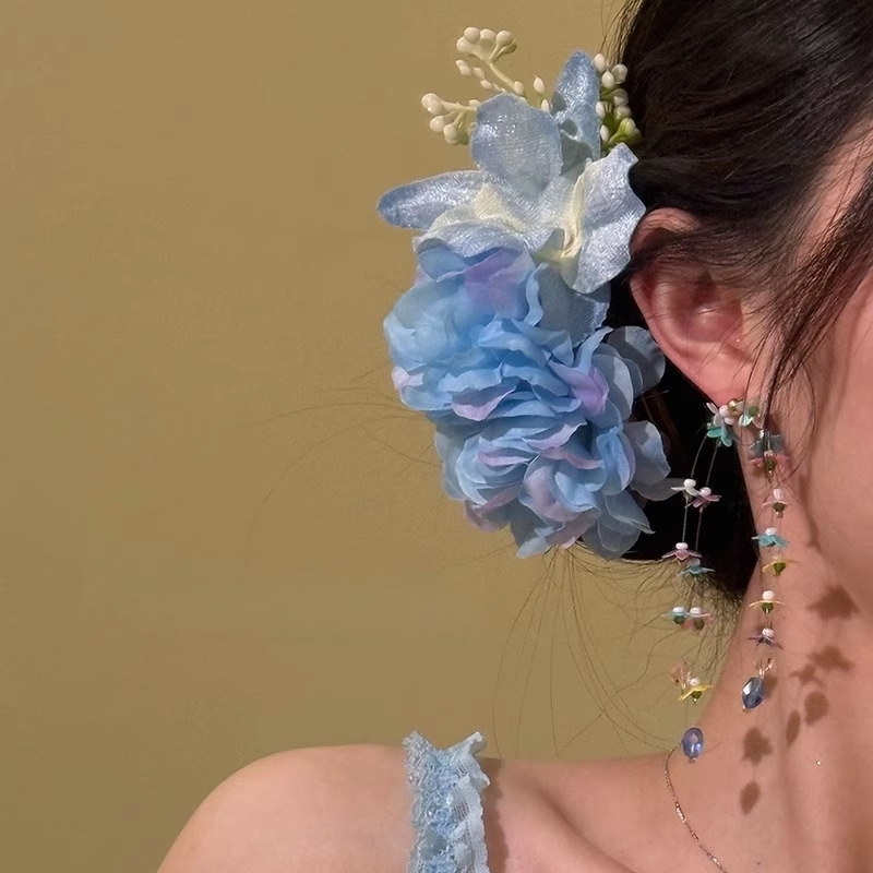 清楚でありながら華やかさを放つ、ブルーの蝶蘭造花ヘアアクセサリーです。成人式、卒業式、結婚式(ご親族・ご友人としてのご列席)などの公式な場はもちろん、振袖や袴、留袖などの和装にぴったりと寄り添い、髪元に典雅なポイントを灯します。