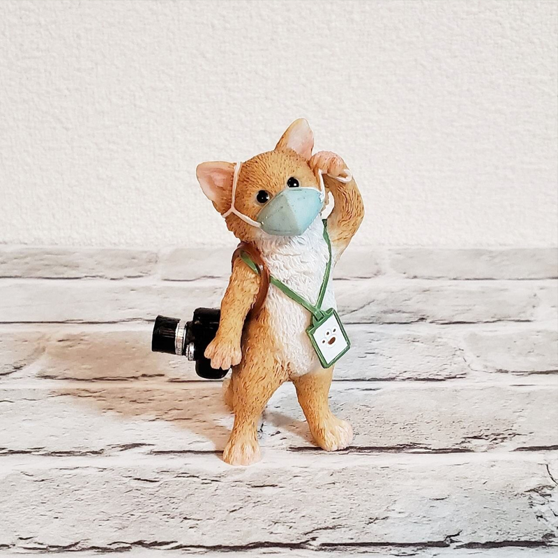 猫の置物 取材withマスク 飾り インテリア飾り可愛い 幸運 招き卓上置物インテリア 雑貨 小物