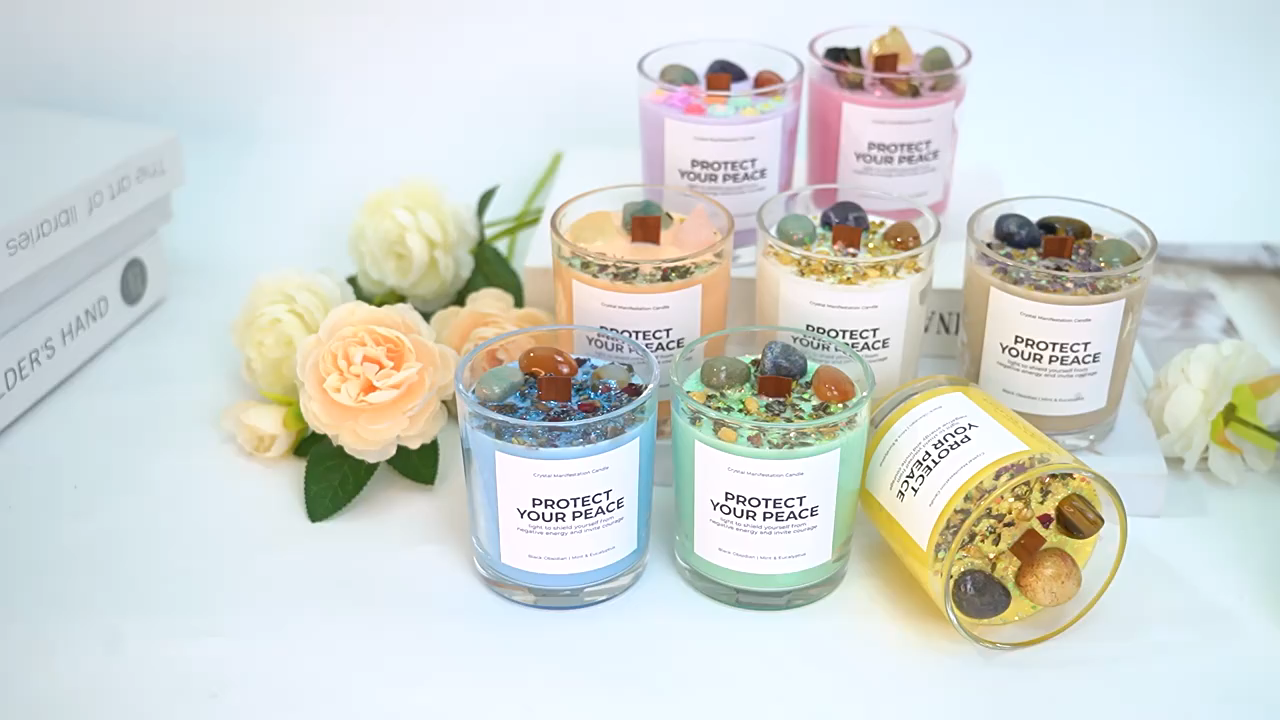 お部屋をほのかな光と香りで包み、目で見て楽しめる手作りアロマキャンドルです。厳選された天然大豆ワックスをベースに、可憐な押し花と神秘的な輝きを放つ天然石(水晶)を一つ一つ丁寧に封じ込みました。炎がゆらめくたびに、花々と石が優しい光に浮かび上がり、唯一無二の美しい世界を創り出します。眺めているだけで心が安らぎ、日常に特別な癒しの瞬間を届けます。