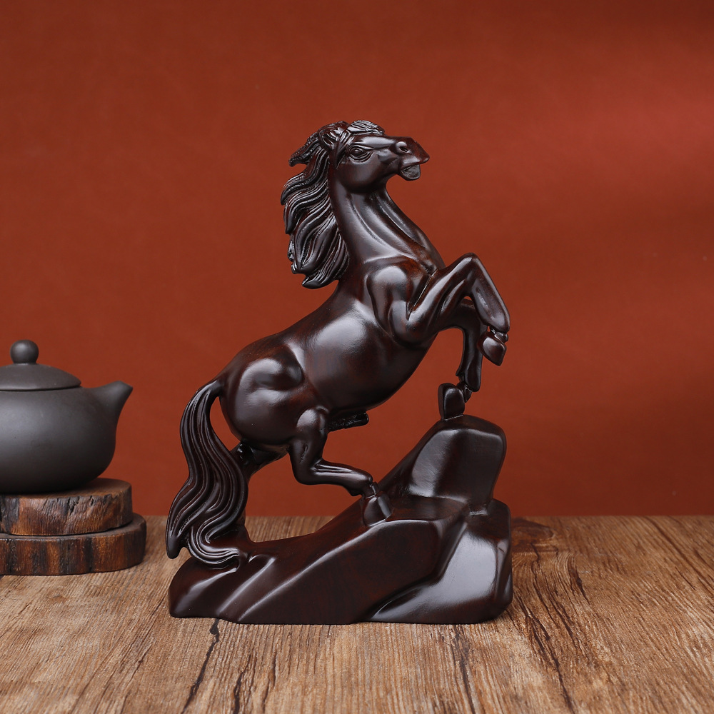 素材には、高級感のある黒檀(こくたん)を使用。深みのある色合いと、磨き上げられたなめらかな質感が、時間を経ても色あせない品格を備えています。一つひとつを丁寧に彫り上げられた馬の姿は、力強さと優雅さを兼ね備え、見る者に力と安らぎを与えます。