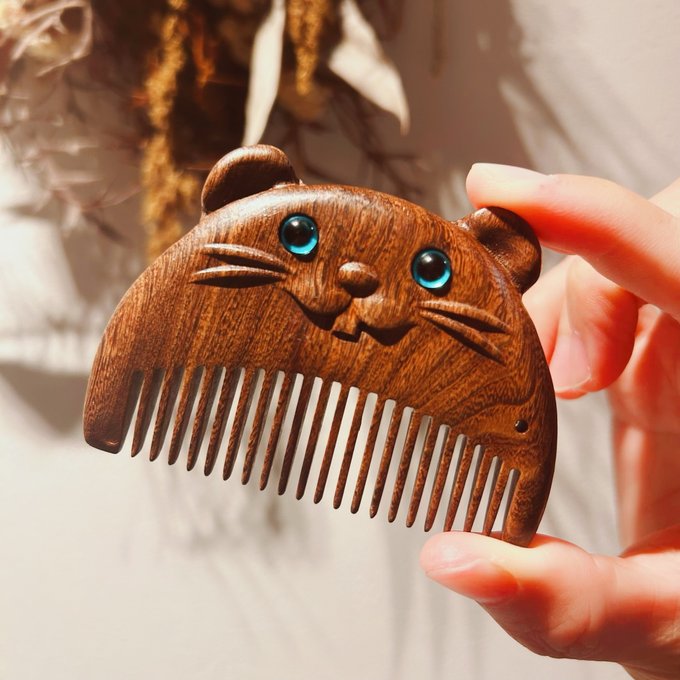 •檀木櫛を40℃以上の温度環境に置かないでください。気温の影響で檀木櫛が変形したら、手で力を入れずに、櫛を水に浸して乾かして自然に回復してください。