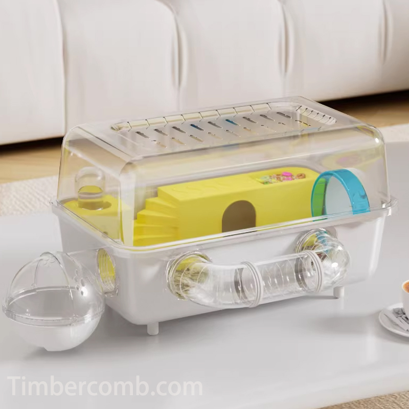 大型サイズ本体サイズ:約 49cm(外接浴室含む)×30cm(外置パイプ含む)×23cm(高さ)の大容量設計で、大きなキンクマハムスターでもゆったり過ごせます。透明なアクリル製カバーで、ハムスターの可愛い様子を全方位から観察でき、インテリアにもなるおしゃれなデザインです。