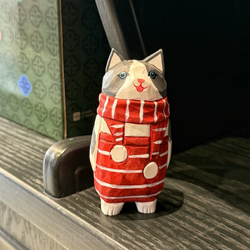 手彫りの温かみが伝わる、レトロ風ヴィンテージな木彫り猫の置物です。一つひとつ丁寧に彫り上げられた風合いは、見る人の心を癒やすナチュラルな魅力にあふれています。経年変化を楽しめるアンティーク調の仕上げが、お部屋に趣と落ち着きをプラス。卓上にちょこんと飾るだけで、空間がクリエイティブで優しい雰囲気に変わります。ギフトやインテリア小物としてもおすすめです。