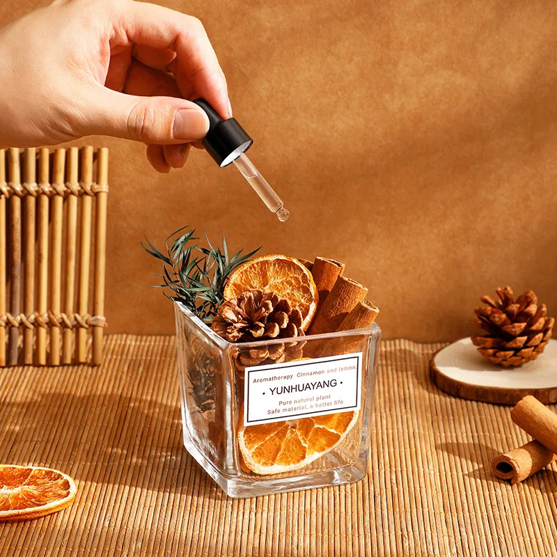 付属のアロマオイルを2-3滴、シナモンスティックや松ぼっくりなど、お好みの素材に垂らしてください。