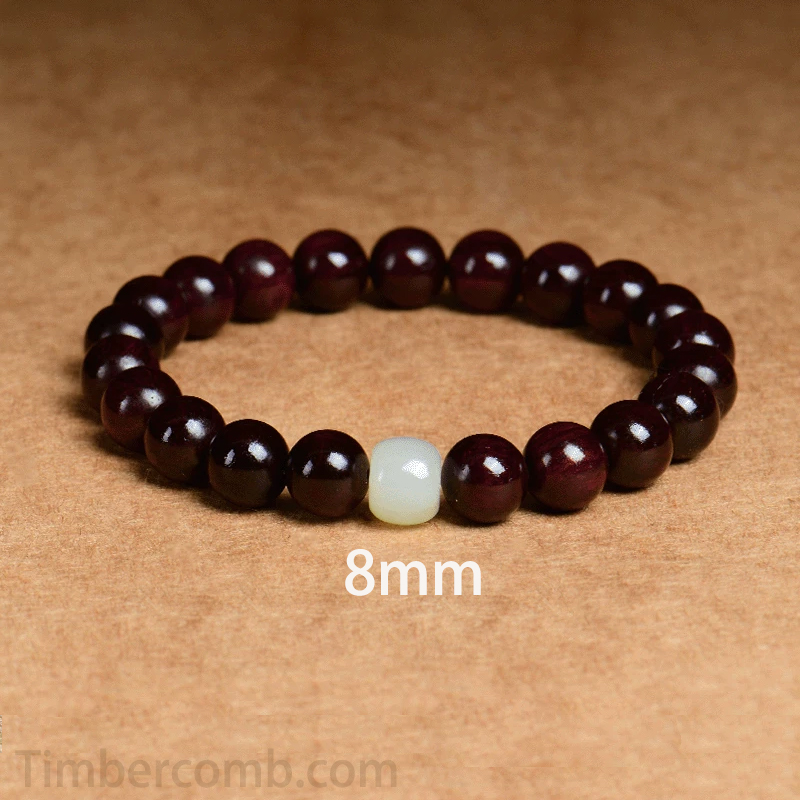 高級木材として知られる金糸檀木(きんしたんぼく)を贅沢に使用し、8mm/10mmに仕上げたブレスレットに、清涼感あふれる和田玉石をアクセントとしてあしらいました。温かみのある木の風合いと、玉石のような滑らかな輝きが手元に調和し、上品で落ち着いた印象を与えます。