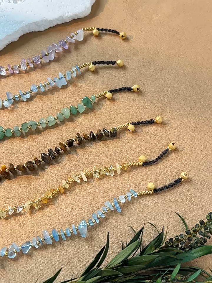 伝統的なワックスコードと、温かな光沢を持つ銅珠で丁寧に編み上げた、丈夫で味わい深いハンドメイドブレスレットです。5種類の天然石それぞれが持つエネルギーを、ナチュラルで素朴な風合いのフォルムに閉じ込めました。