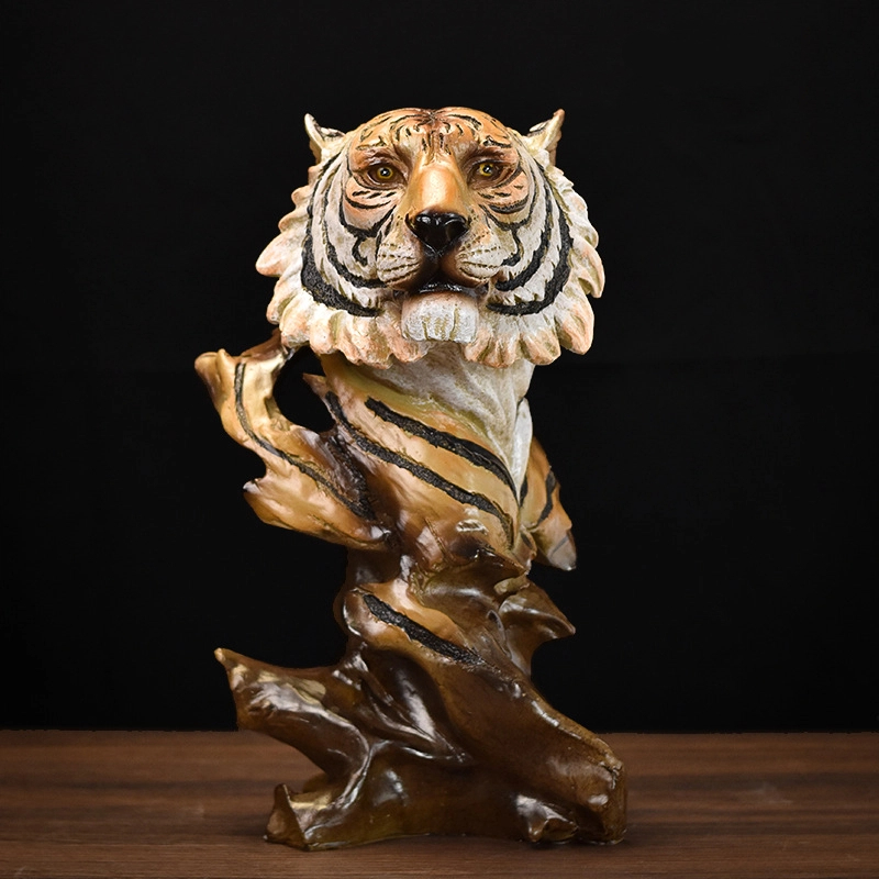 威風堂々!精密細工のレジン製 虎の頭部彫刻オブジェ
