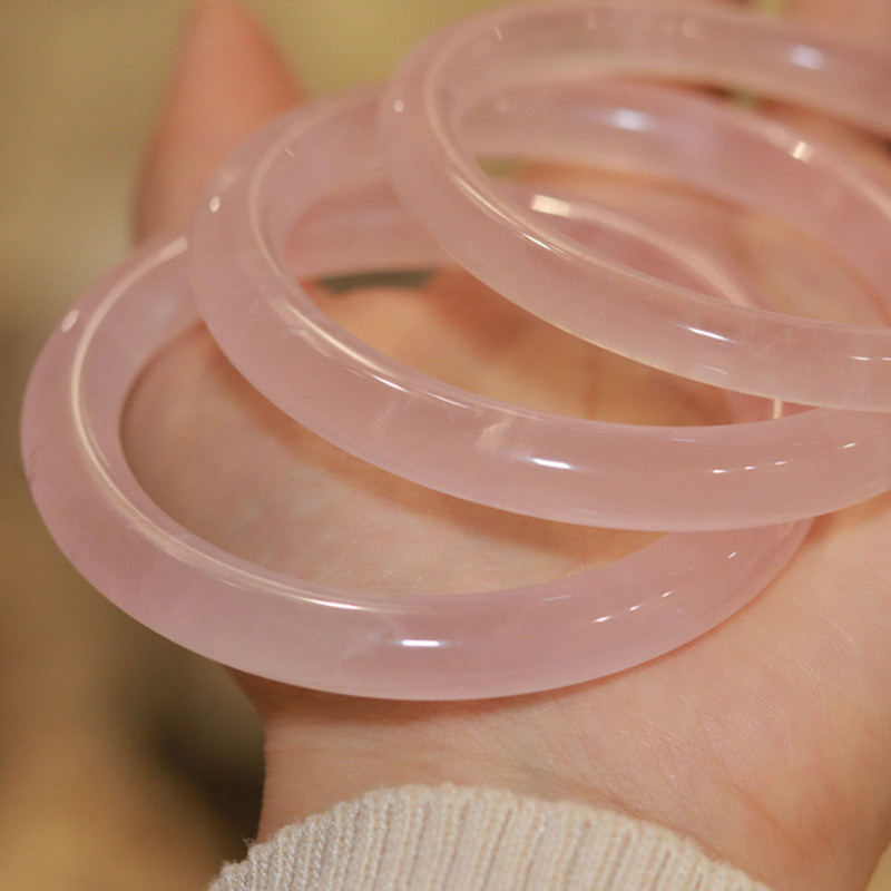 こちらは、高品質なローズクォーツ を使用した、天然石バングルです。