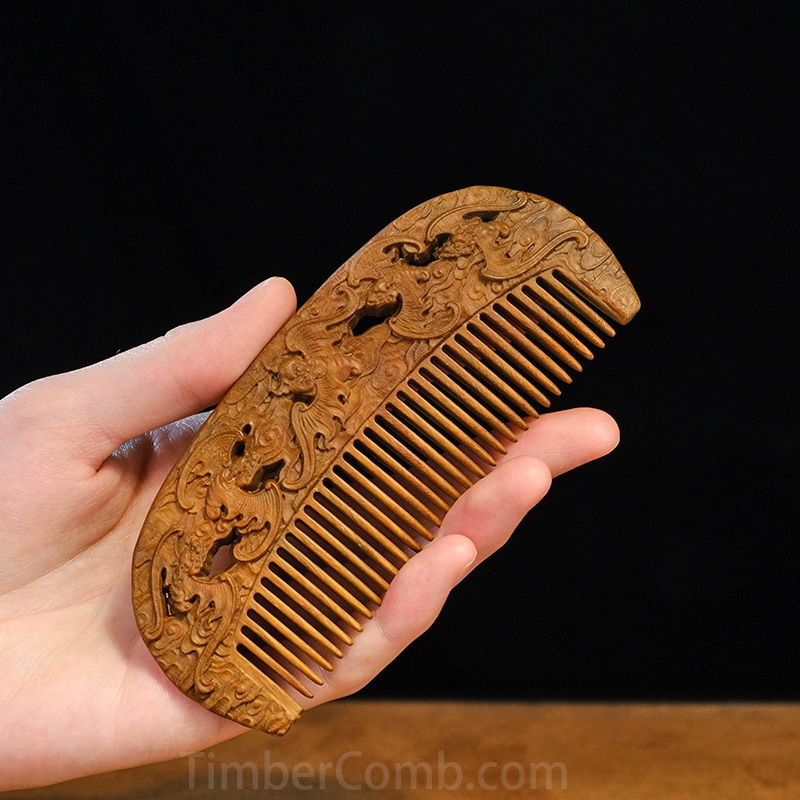 花梨木彫刻五福オリジナル木櫛 - 伝統工芸と現代デザインの融合贈り物