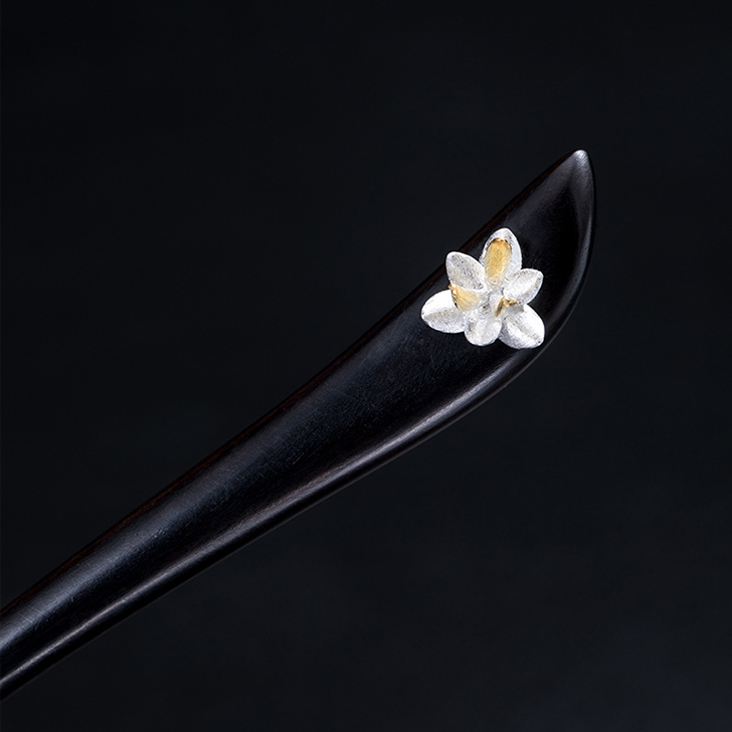 黒檀木のかんざし 九枚の花びらのかんざし 黒檀 木製簪 和装髪飾りヘアアクセサリー
