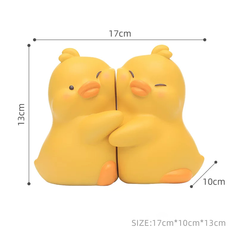 เป็ดน่ารักสามารถจัดระเบียบชั้นวางหนังสือได้ เนื่องจากมีน้ำหนักเพียงพอที่จะไม่ให้หนังสือล้มลง เป็ดตัวนี้ไม่เพียงแต่สามารถเก็บหนังสือได้ แต่ยังมีความสวยงามอีกด้วย ด้วยการออกแบบที่น่ารักและสง่างาม ทำให้ชั้นวางหนังสือดูสดใสและทำให้หนังสือน่าสนใจยิ่งขึ้น